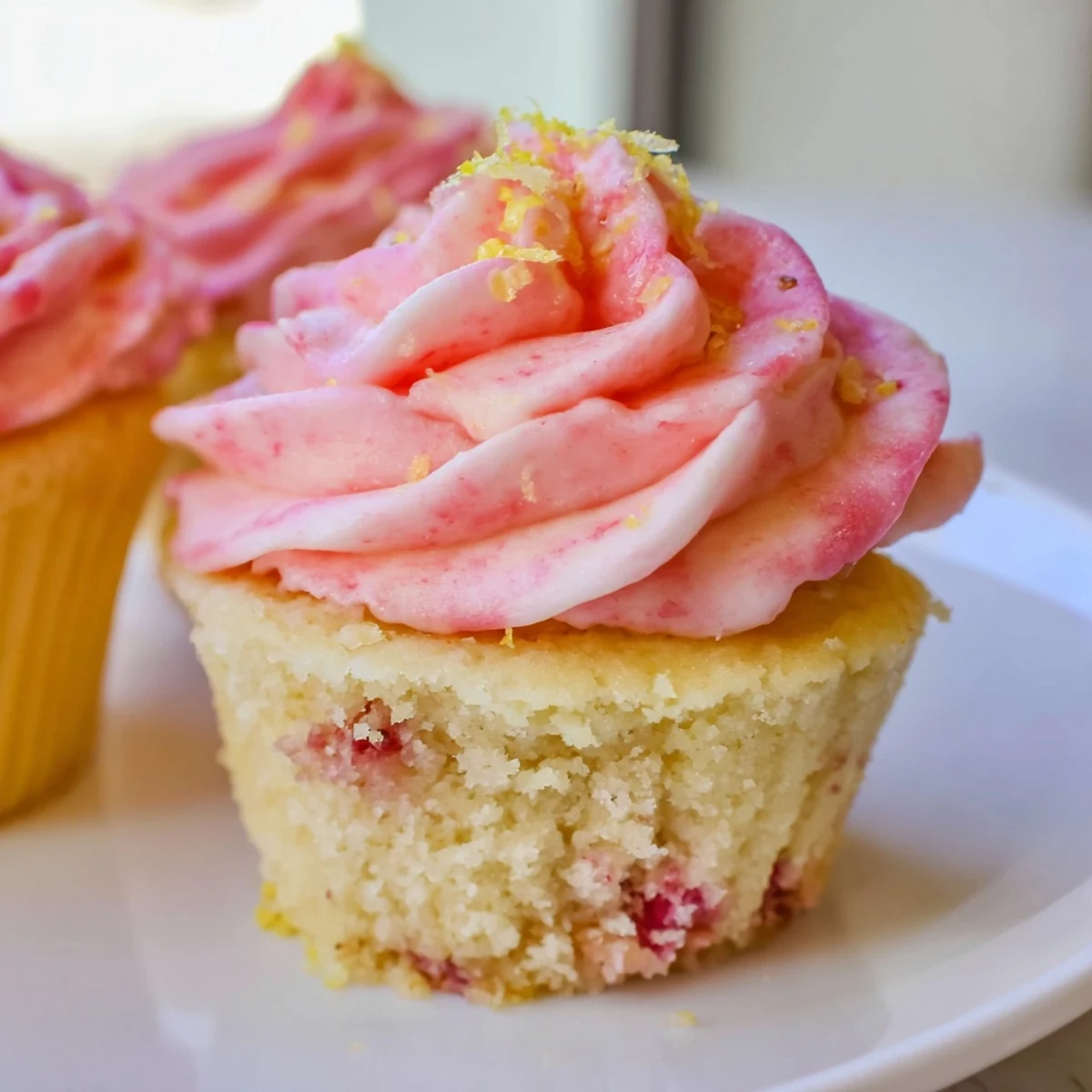 - Once cupcakes are completely cool, pipe or spread the buttercream generously and garnish with extra strawberries or lemon zest if you feel like fancying them up